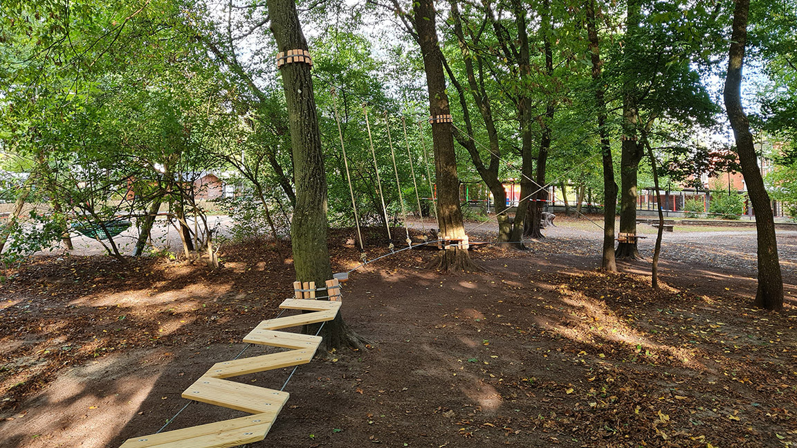 Ein Niedrigseilgarten-Spielplatz bietet den Kindern die Möglichkeit, ihre Grenzen zu testen, Koordination und Gleichgewicht zu trainieren und gleichzeitig miteinander neue Erfahrungen zu machen. Im Gegensatz zu herkömmlichen Spielgeräten stehen hier Gemeinschaft, Abenteuer und pädagogischer Mehrwert im Vordergrund.
