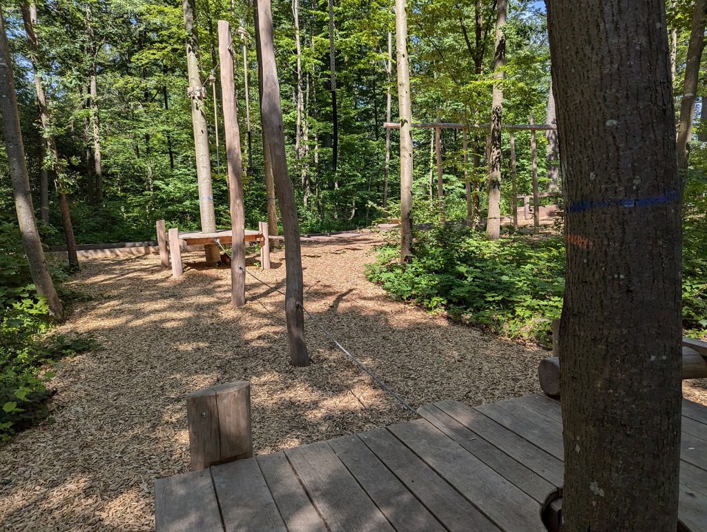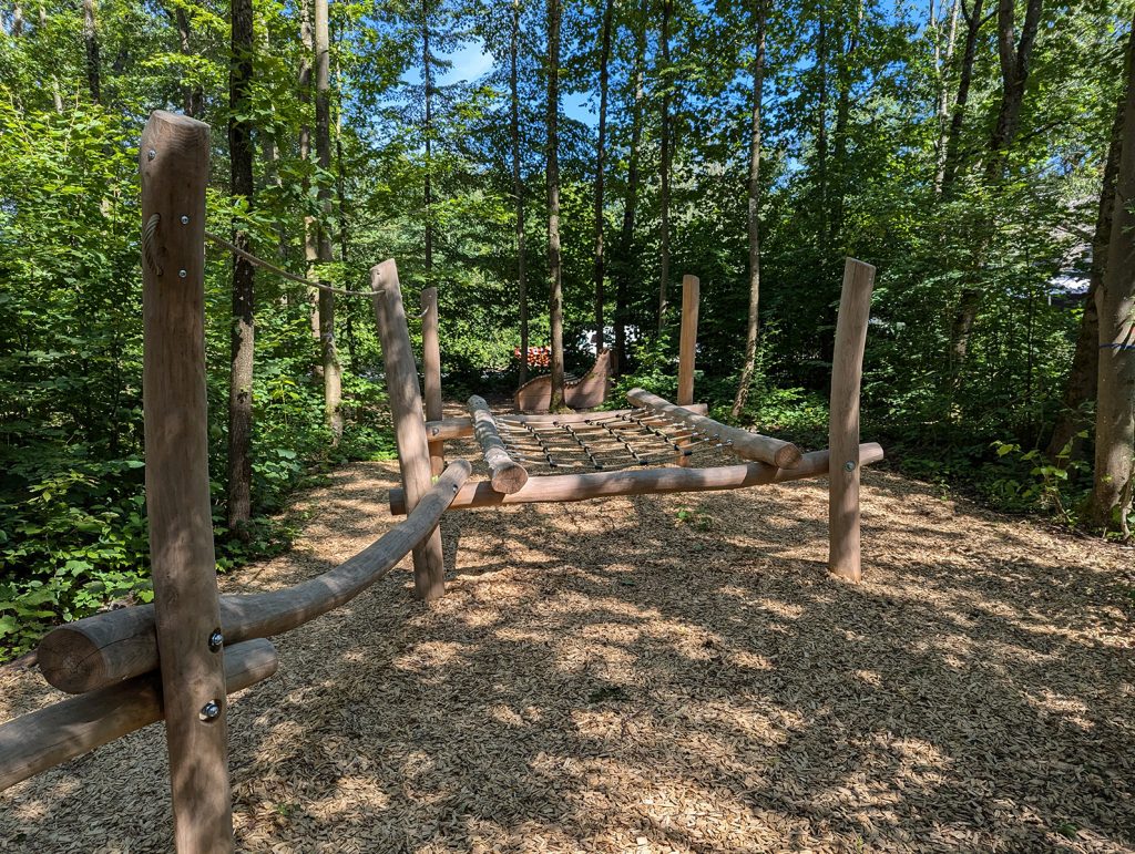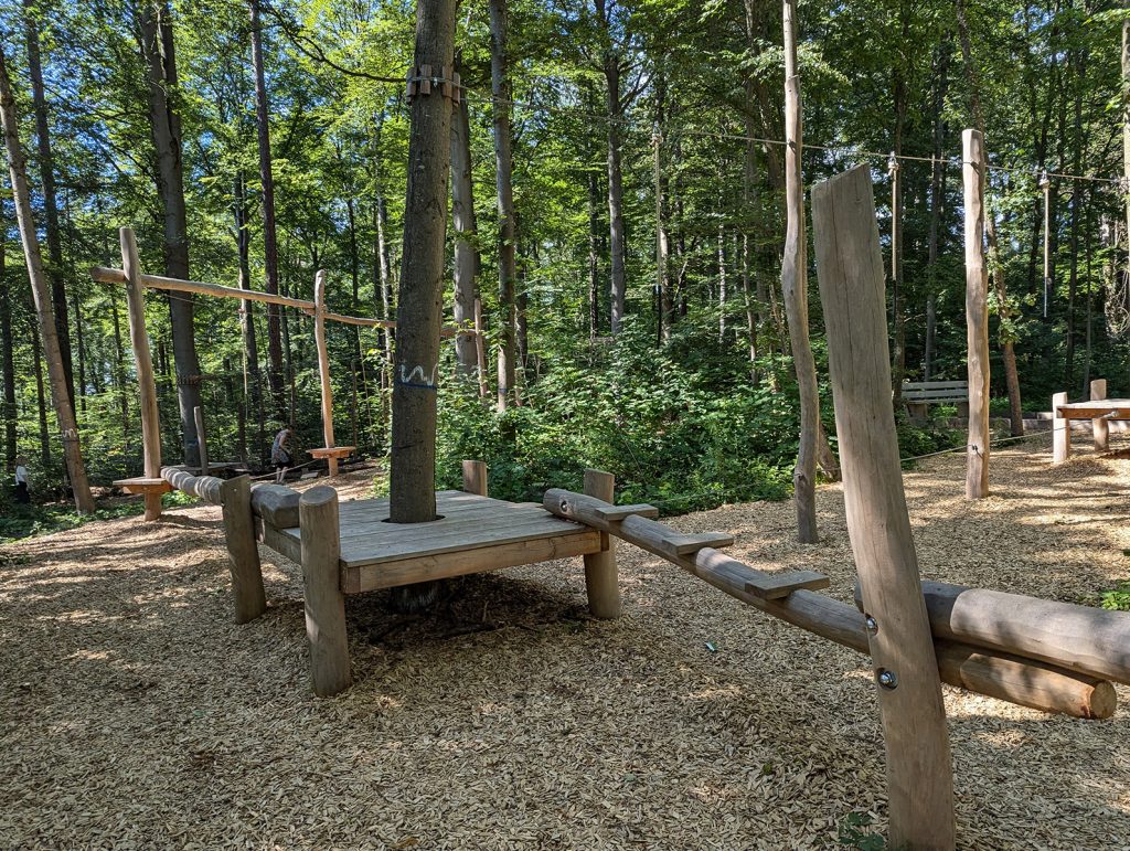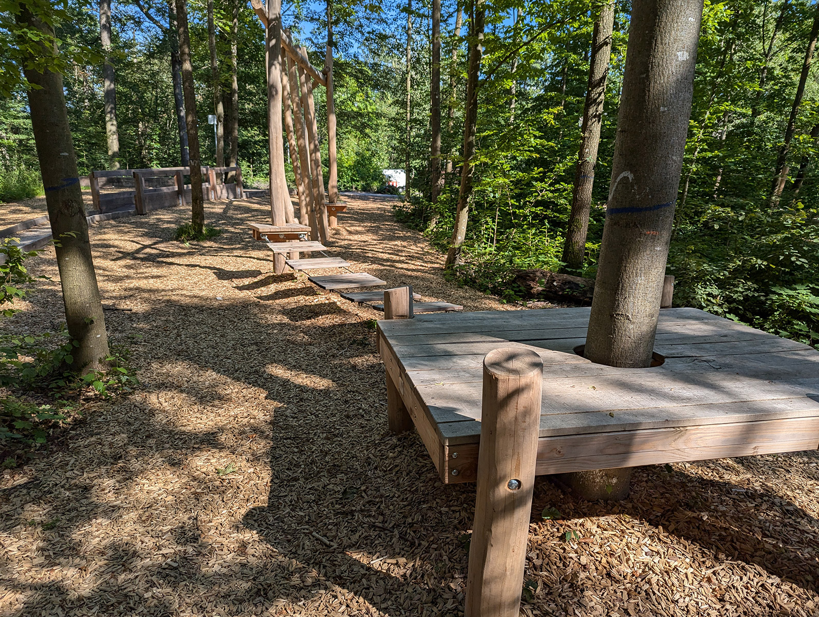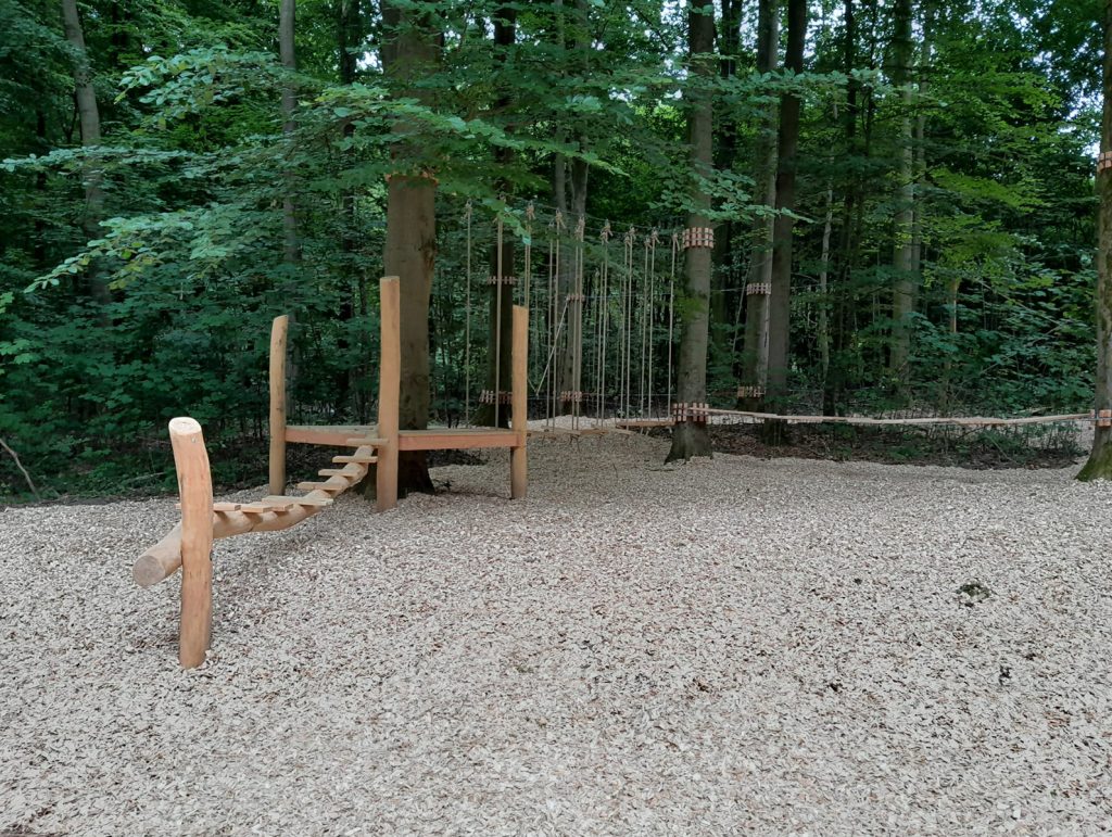Mit Baumplattformen – Höhere Elemente werden mit Balancierstrecken verbunden und schaffen ein abenteuerliches Spielerlebnis.