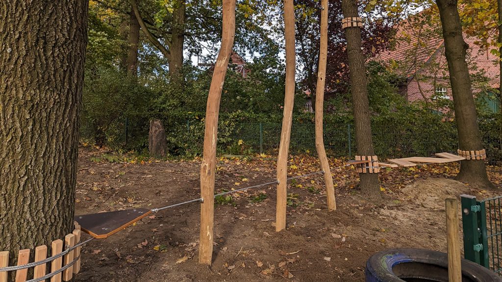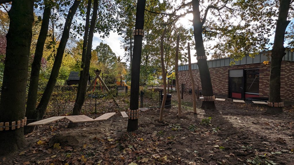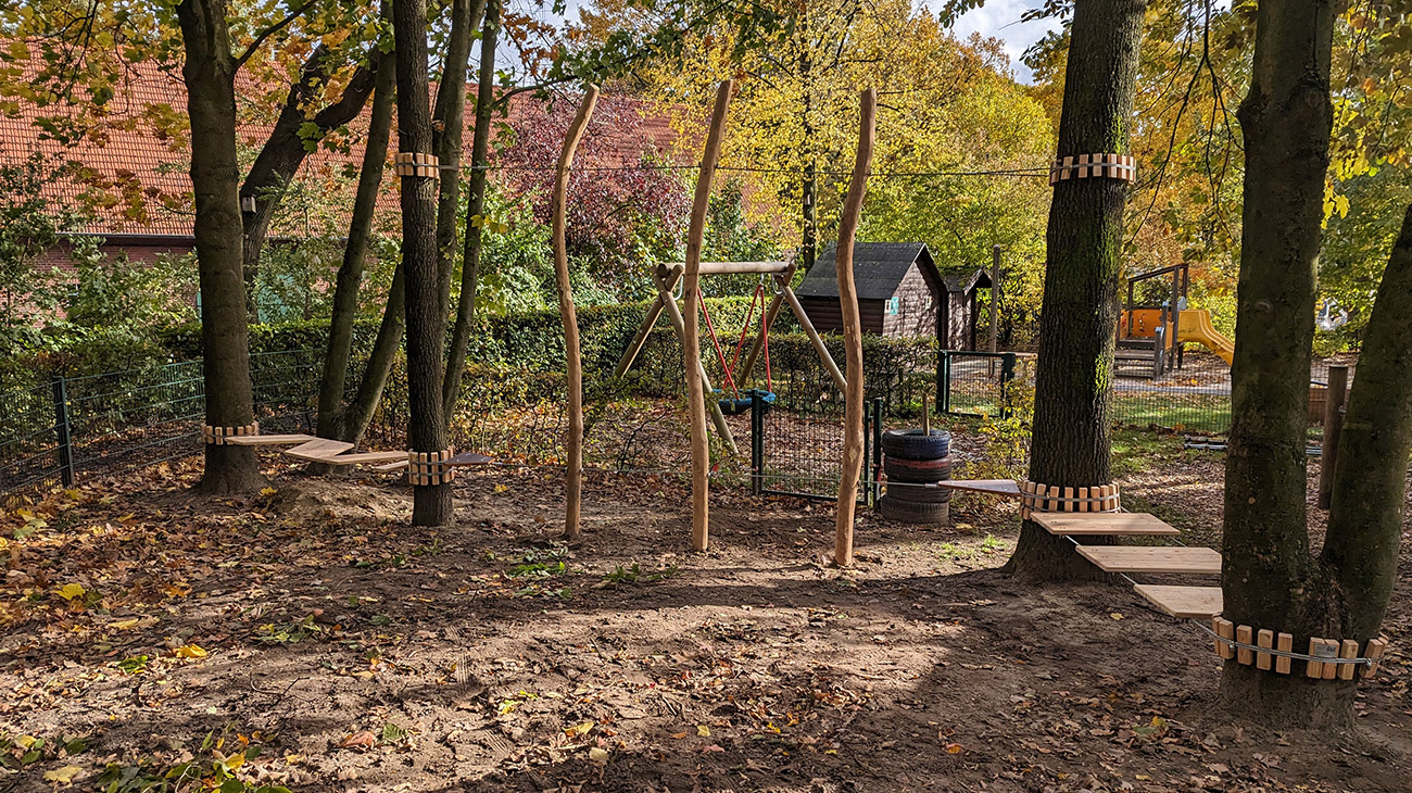 Auch für kleinere Einrichtungen mit begrenztem Raum entwickeln wir passende Spielkonzepte. Für die Kita in Coesfeld entstand eine platzsparende Anlage, die den Kindern vielfältige Spiel- und Bewegungsmöglichkeiten eröffnet.