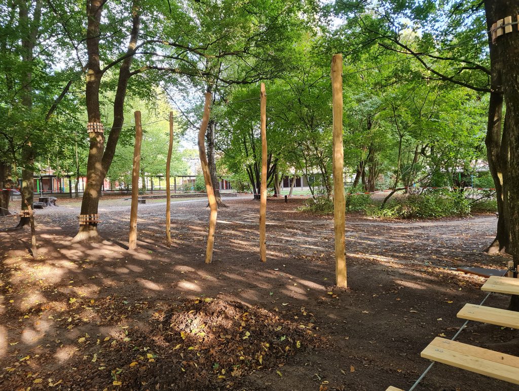 Für die Grundschule Hamburg haben wir einen Niedrigseilgarten im bestehenden Baumbestand realisiert.