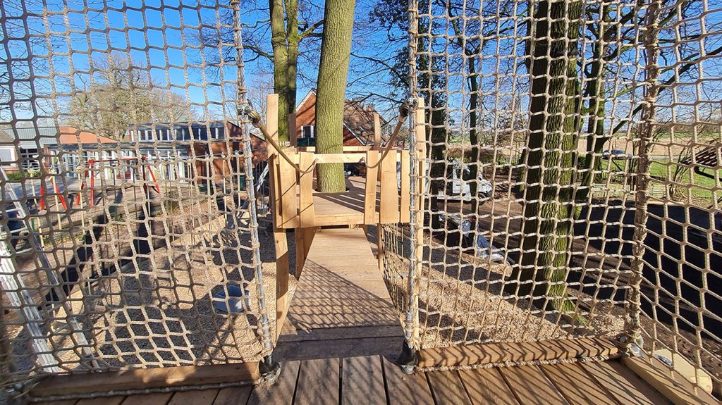 Baumhaus mit Verbindungselementen – Kreative Übergänge machen das Klettererlebnis spannend und abwechslungsreich.
