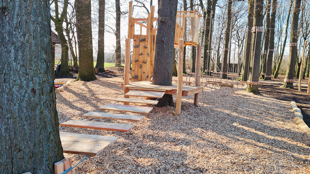 – Baumhaus mit Verbindungselementen – Kreative Übergänge machen das Klettererlebnis spannend und abwechslungsreich.