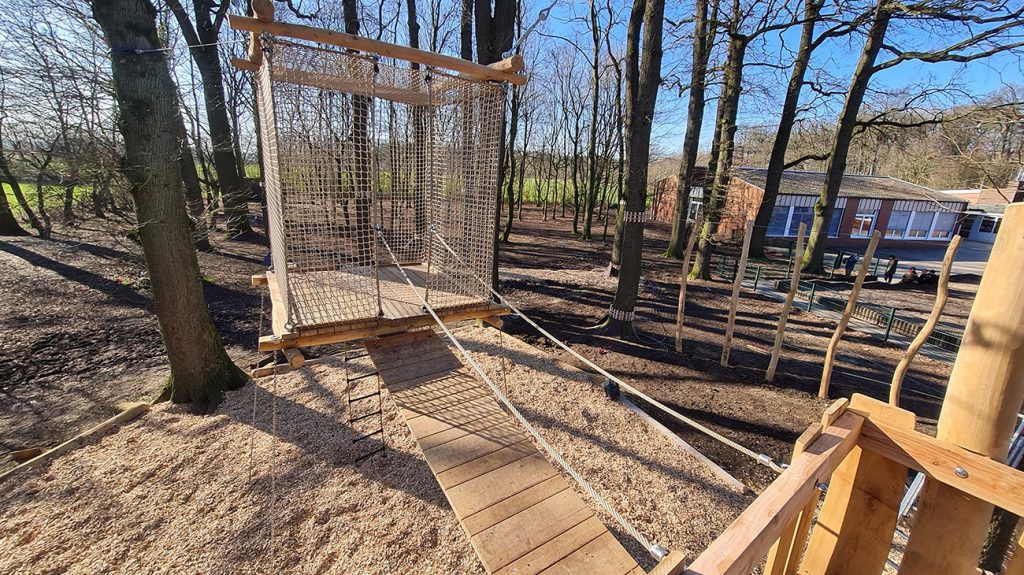 Niedrigseilgarten – Balancieren, Hangeln und Klettern fördern Geschicklichkeit und Koordination.