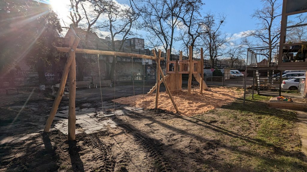 Für eine Förderschule haben wir ein vielseitiges Spielhaus mit Schaukel und Sandkasten geschaffen, das auf die unterschiedlichen Bedürfnisse der Kinder eingeht. Der Zugang zum Spielhaus ist in verschiedenen Schwierigkeitsgraden gestaltet, sodass jede und jeder entsprechend der eigenen Fähigkeiten passende Herausforderungen findet.