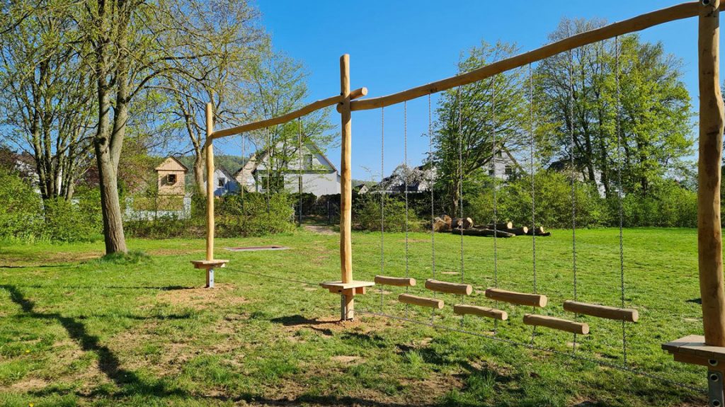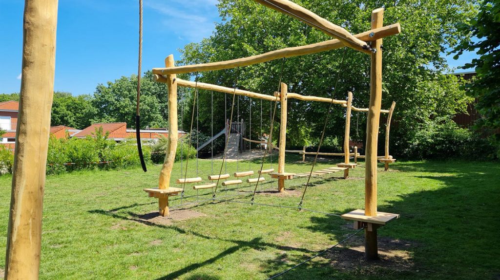 Durch die Verwendung von Robinienholz, einem der widerstandsfähigsten und langlebigsten Hölzer, sind unsere Niedrigseilgärten besonders robust und nachhaltig. Die Kombination aus Naturmaterialien und umweltschonender Bauweise macht sie zur perfekten Wahl für naturnahe Spielplätze und Trainingsanlagen, die langlebig, sicher und optisch ansprechend sein sollen.