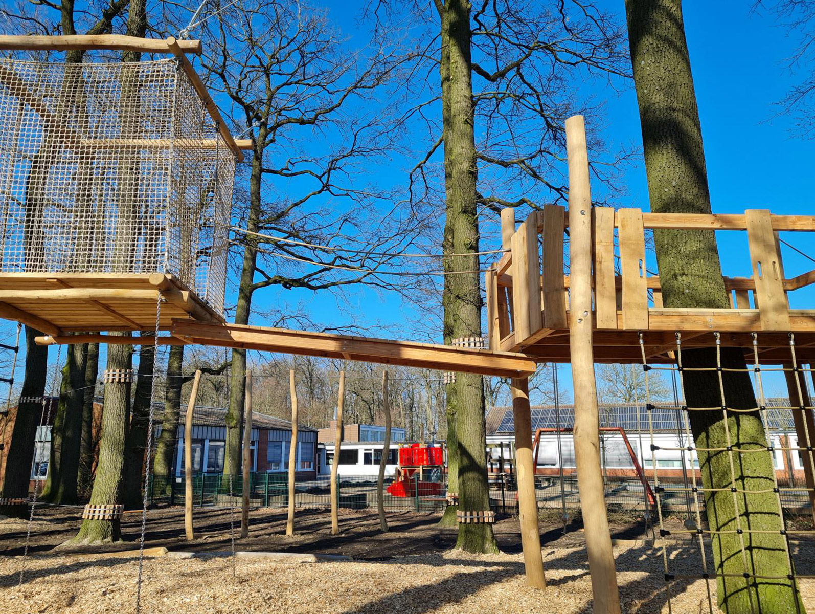 Die Baumhauskonzepte können je nach Anforderung unterschiedlich umgesetzt werden. Dazu zählen klassische Baumhäuser mit Aufstiegselementen und Rutschen, Kletter- und Abenteuerbaumhäuser mit Seilbrücken, Netzen oder Kletterwänden sowie inklusive Lösungen für barrierefreie Nutzung. Zusätzlich bieten sich Baumplattformen im vorhandenen Baumbestand an, die sich ideal mit Niedrigseilgärten kombinieren lassen. Alle Anlagen sind modular erweiterbar und können an veränderte Anforderungen angepasst werden.