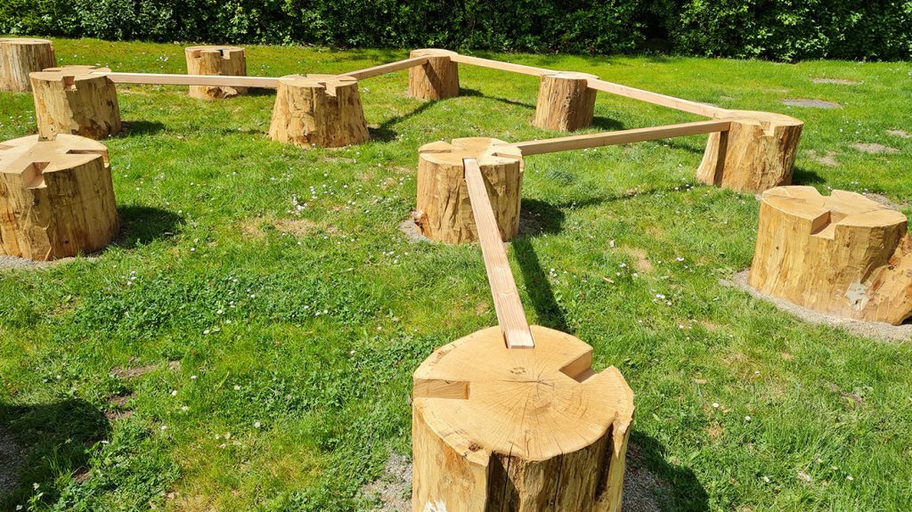 Ein Niedrigseilgarten aus langlebigen Robinienmasten wurde speziell für Trainings- und Übungszwecke entwickelt. Die Anlage ist auf Teamarbeit und Persönlichkeitsentwicklung ausgerichtet, vielseitig einsetzbar für Gruppenübungen und reflexionsbasierte Lernprozesse und erfüllt zugleich die Sicherheitsstandards nach Spielplatznorm. Realisiert an der Berufsschule bietet sie eine praxisnahe Umgebung für Schüler, um Zusammenarbeit, Vertrauen und Problemlösekompetenzen zu stärken.